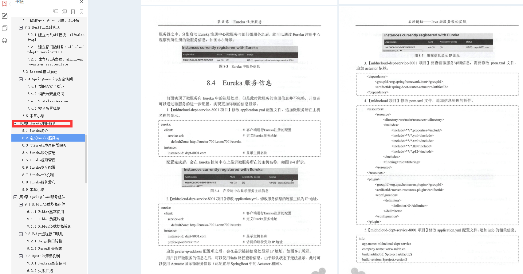 **第8章Eureka注册服务:**主要讲解 Eureka的作用、Eureka微服务创建、Eureka集群搭建、打包部署等。
