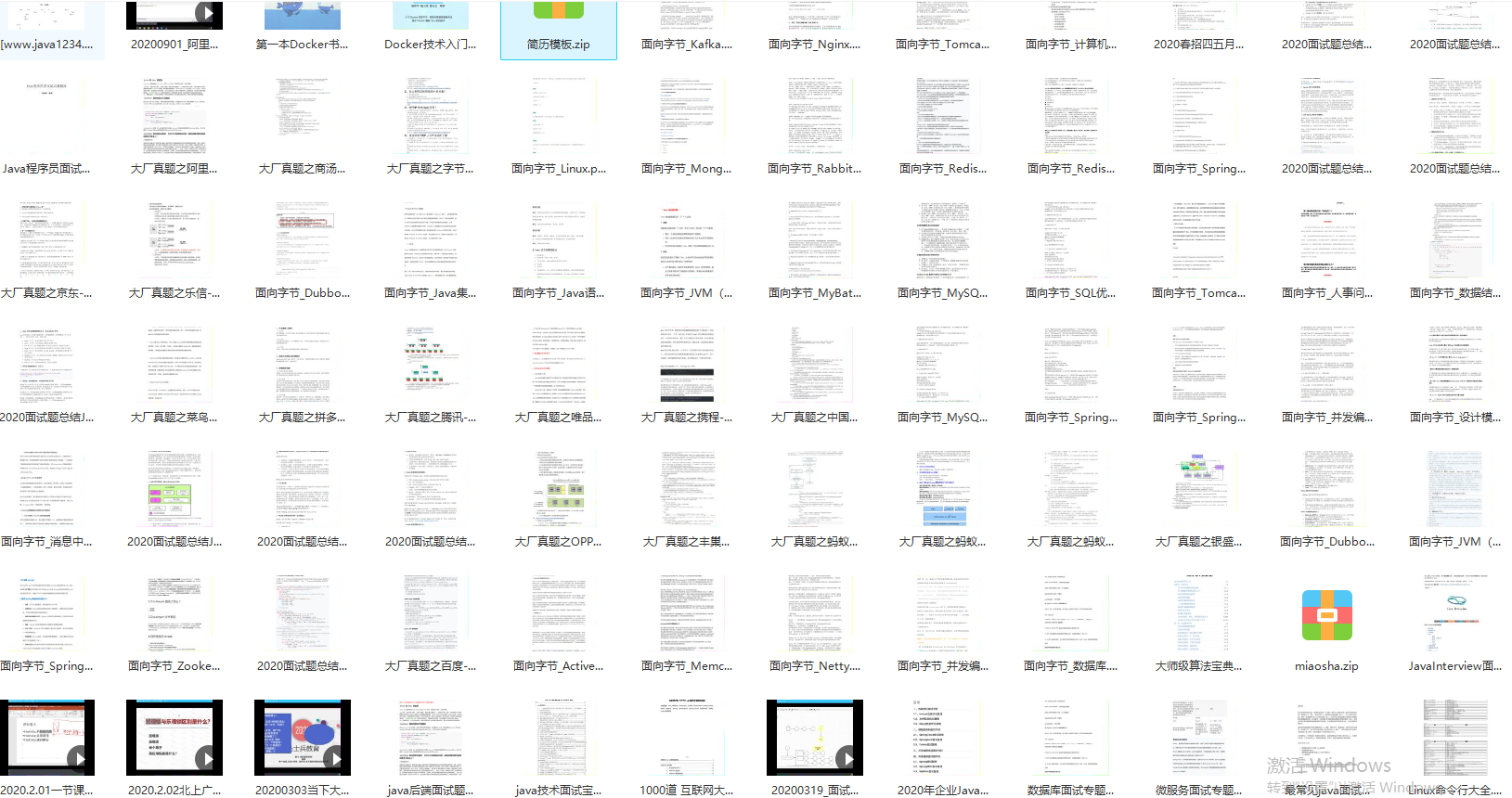 其他像Spring,SpringBoot,SpringCloud,SpringCloudAlibaba,Dubbo,Zookeeper,Kafka,RocketMQ,RabbitMQ,Netty,MySQL,Docker,K8s等等我都整理好,这里就不一一展示了。