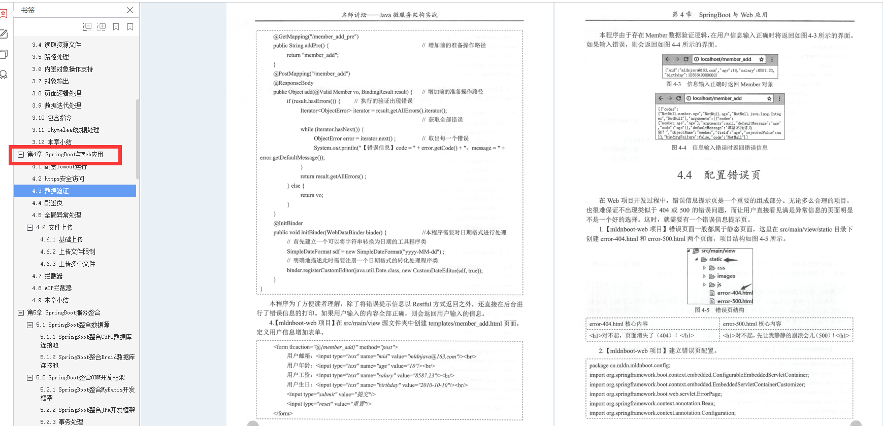 **第4章SpringBoot与Web应用:**主要讲解https 协议整合、Tomcat发布、全局异常处理、文件上传等。