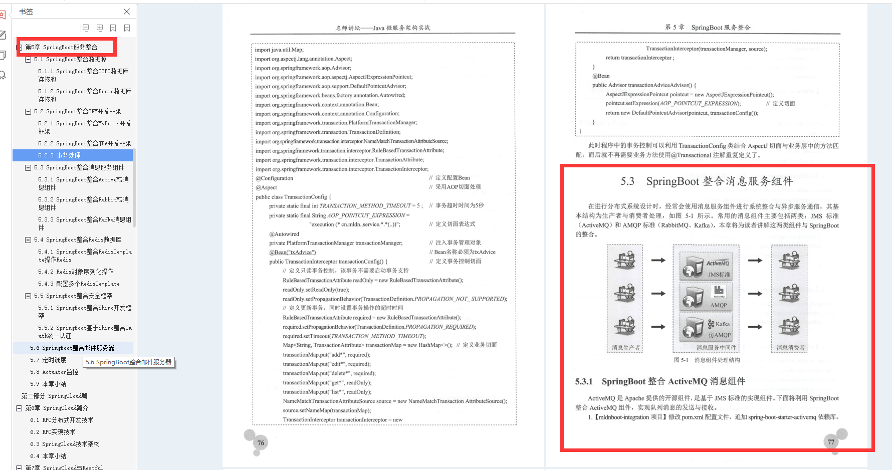 **第14章 RabbitMO消息组件: **RabbitMO 与Spring 微服务有着密不可分的关联,本章将为读者讲解RabbitMQ的安装、管理、Java开发与集群使用。