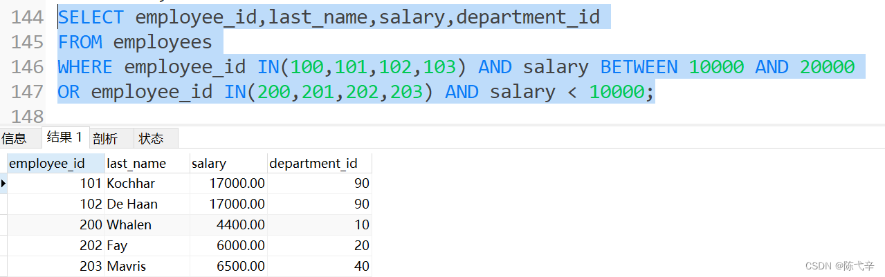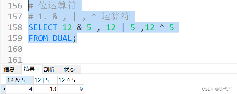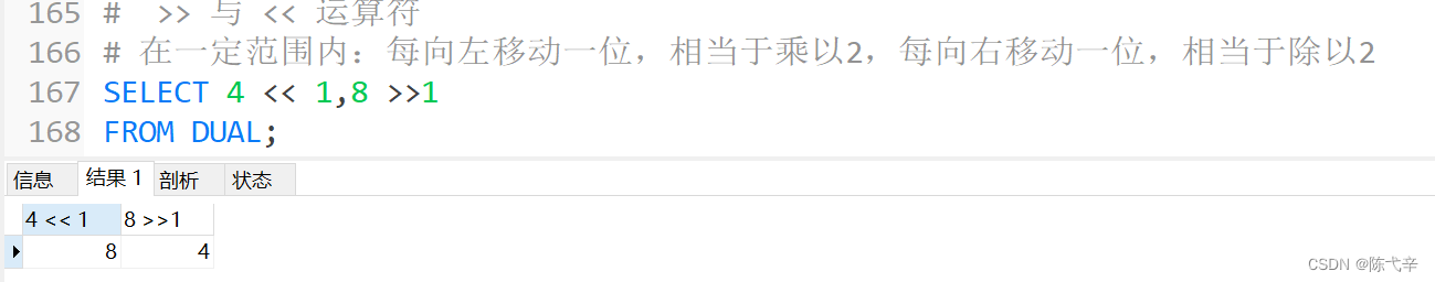 以上就是年轻保温杯最近收集整理的关于MySQL 运算符目录0.数据导入1. 算术运算符 2. 比较运算符 3. 逻辑运算符 4. 位运算符 5. 运算符的优先级 6.练习的全部内容,更多相关MySQL内容请搜索靠谱客的其他文章。