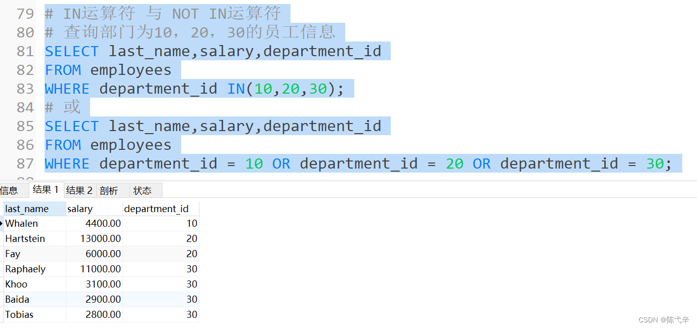 2.2.5 IN运算符 与 NOT IN运算符