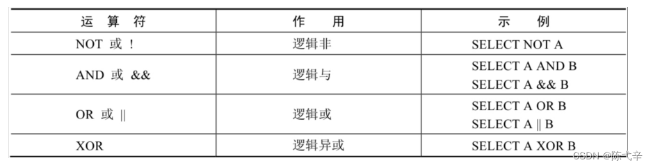 逻辑运算符主要用来判断表达式的真假,在MySQL 中,逻辑运算符的返回结果为 1 、 0 或者 NULL 。MySQL中支持 4 种逻辑运算符如下:![]()