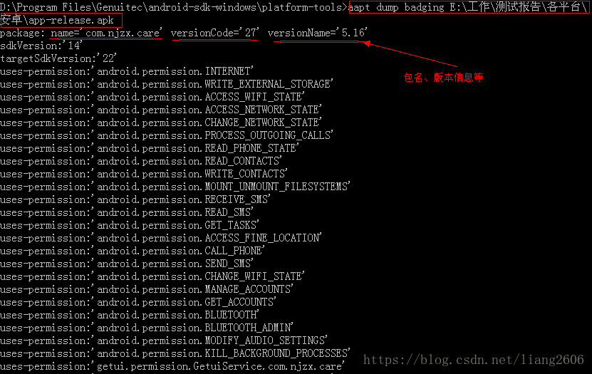 aapt dump badging E:工作测试报告各平台安卓app-release.apk