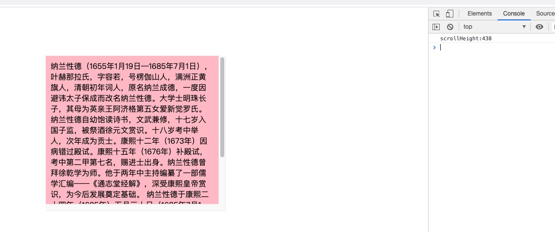 scrollHeight为438,但是这里文本内容的高度只占了418px: