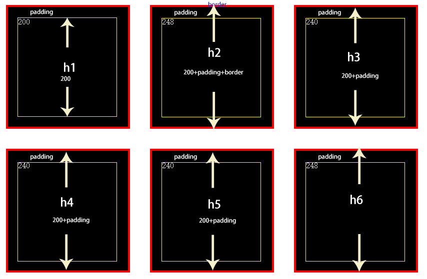 它返回的高度是内容高+padding+边框,但是注意哦,木有加margin哦,当然一般也木有啥需要把margin加进去的,以上代码为例,结果显示上图h2;