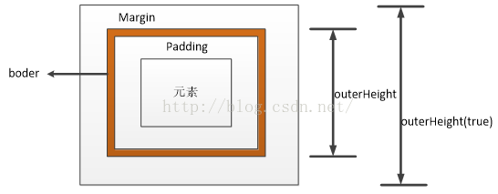 高度为:元素自身高度 + padding + border ;如果参数为true时,高度为:元素自身高度 + padding + border +margin,如下图所示。