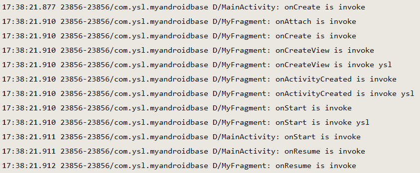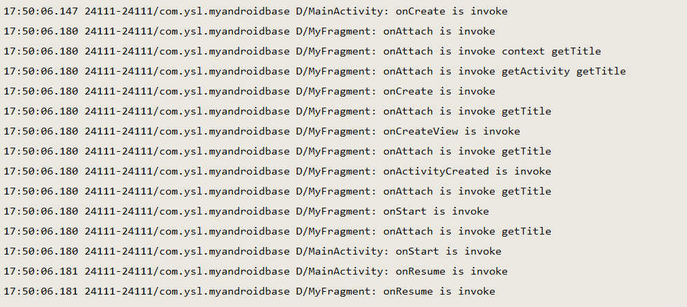可以发现在onAttach()、onCreate()的时候没有打印日志,isAdded方法的返回值还是false;在onCreateView()、onActivityCreated()、onStart()中才获取到了数据。所以,一般获取数据放在onActivityCreated()、onStart()方法中。