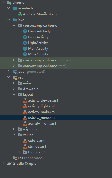 文件夹分布(FrontActivity、activity_front在这个项目没有用到):