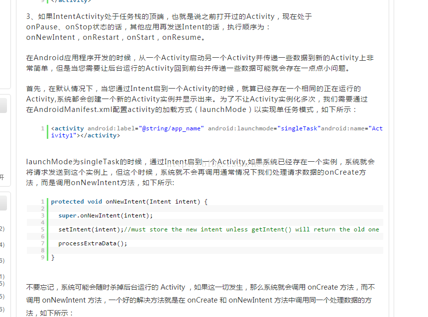 关于onnewintent的部分解释如下: