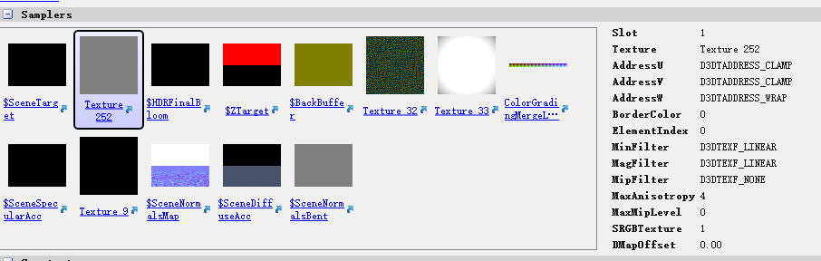 LPDIRECT3DDEVICE9 dv = gcpRendD3D->GetD3DDevice(); bool sRGBRead = gRenDev->IsLinearSpaceShadingEnabled()&&( m_bIsSRGB || s_TexStates[nTS].m_bSRGBLookup &&(m_nFlags& FT_USAGE_ALLOWREADSRGB)); STexState*pDTS =&TexStages[nTUnit].m_State; if(pDTS->m_bSRGBLookup != sRGBRead ) { pDTS->m_bSRGBLookup = sRGBRead; dv->SetSamplerState(nTUnit + nVtxTexOffSet, D3DSAMP_SRGBTEXTURE, sRGBRead ? TRUE : FALSE); }
