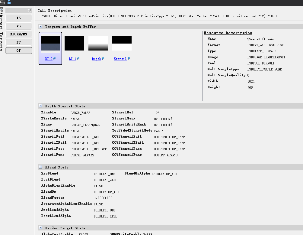 上层API没有问题,那么就只能从底层d3ddevice的SetRenderTarget来查找问题了