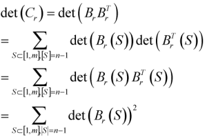 如果S枚举的n-1子集是一个生成树,它的值为1,否则它为0。所以$det(C_{r})$就是生成树的个数。