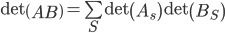 其中S是一个子集,大小为n,也就是S取遍所有的n子集,相应的As和Bs为从A和B中取出S元素下标的所有列和所有行。