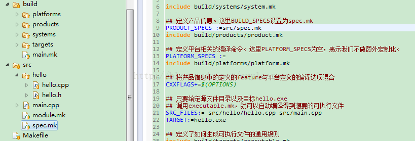 顺利成章地,我们在hello文件夹中也加入module.mk, 然后在main.mk中将该module.mk也include进来。事情看上去是如此直接简单,但一句话总是在这种时候冒出来:想象是如此美好,现实却是如此残酷。