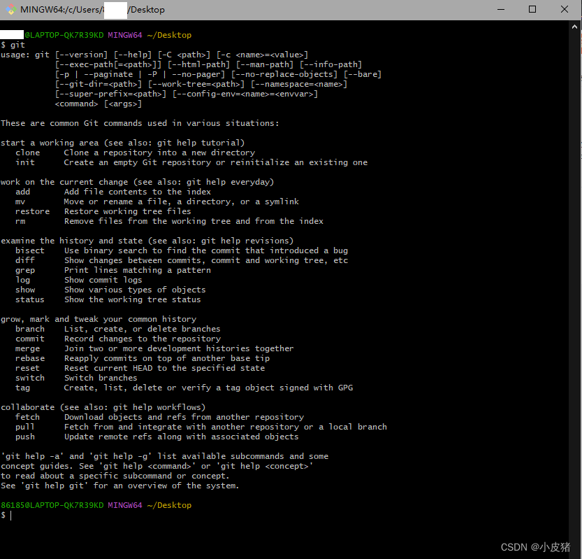 执行 git 指令,出现如下,代表安装成功了