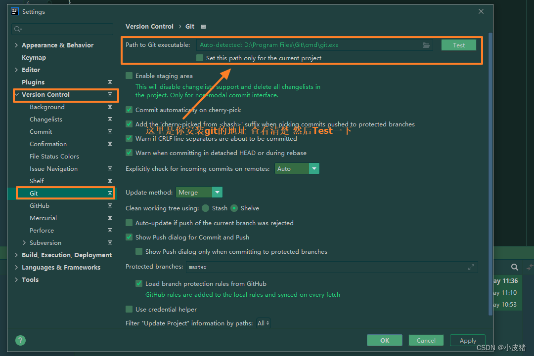 然后回到 git配置部分: