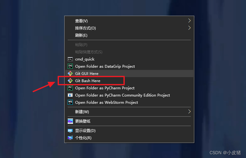 安装完后 右键鼠标会多了两个选项,点击Git Bash Here