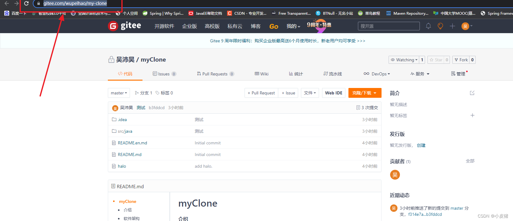我们在gitee上也可以看到已经commit成功了