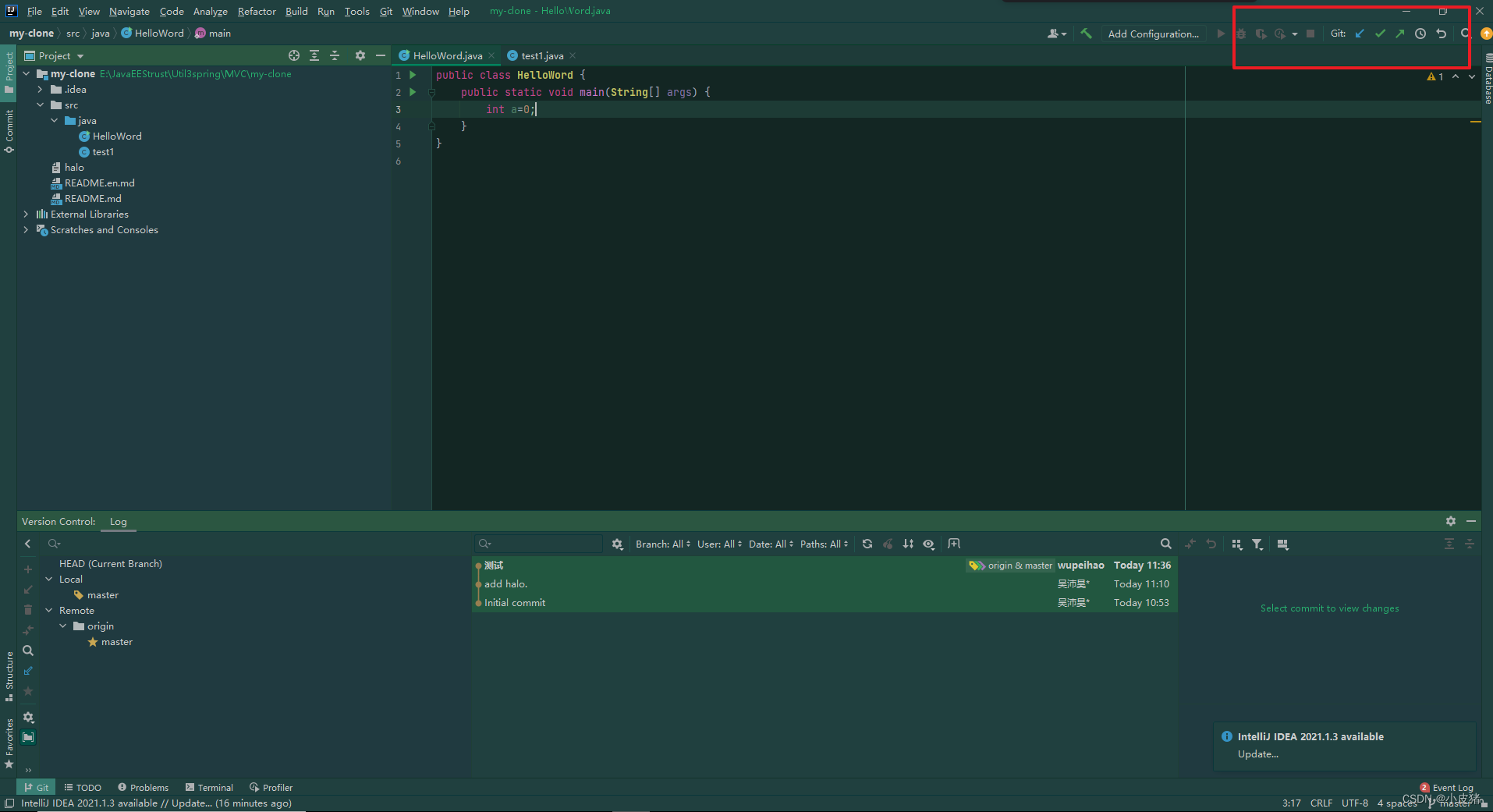 到这里我们就把我们新创建的仓库内容导入到我们的idea当中了