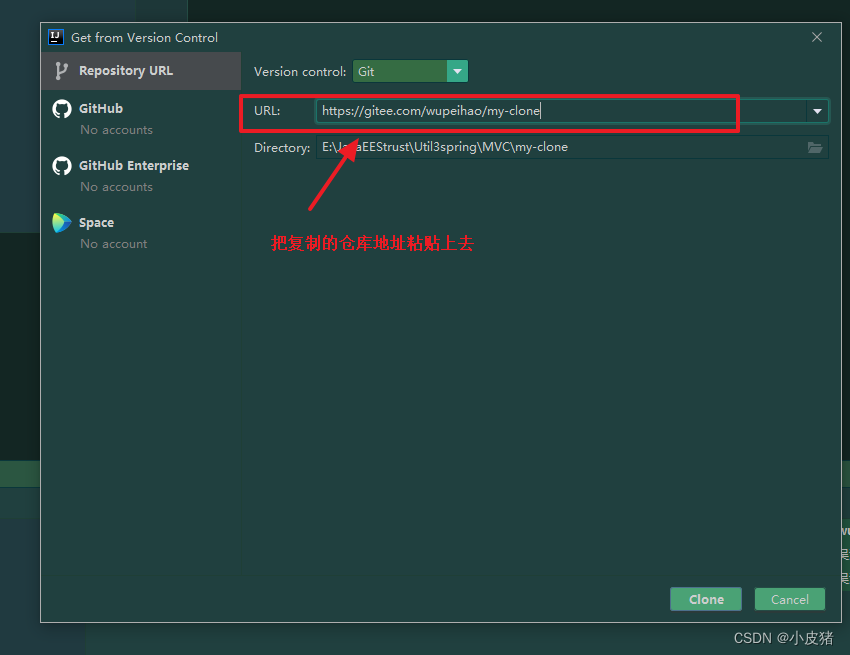 2. 新建完仓库地址后 我们在IDEA中导入