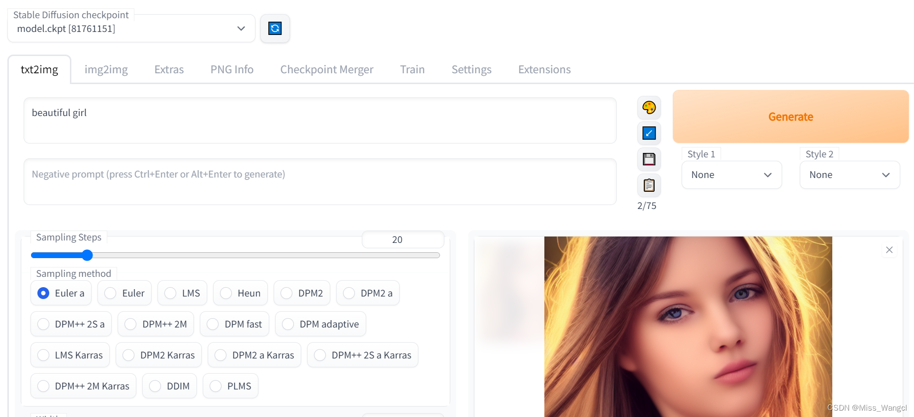 温馨提示:Prompt 里最大只支持 77 个词,多了会报错,删掉几个词就行
