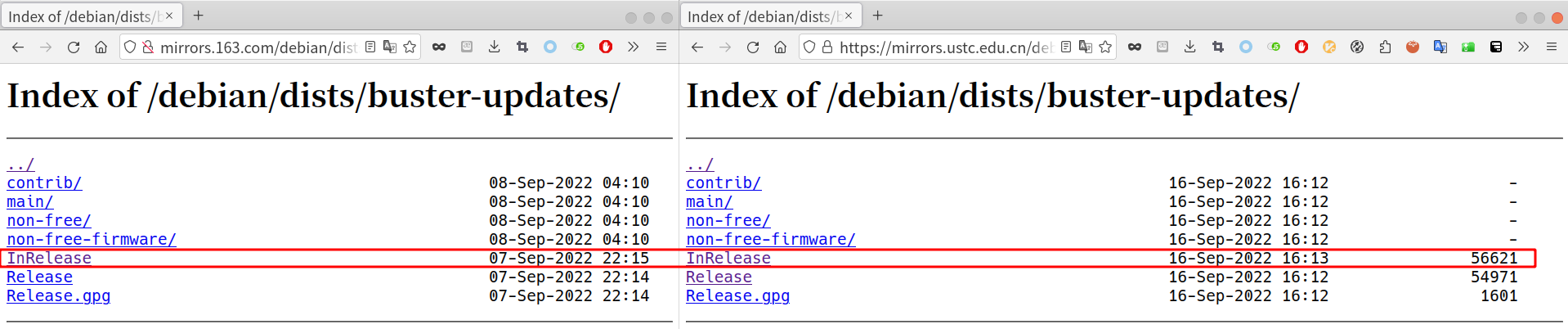 也就是说镜像源已经有几天没更新了,导致InRelease文件过期时间到达。将访问地址换成中科大镜像源,https://mirrors.ustc.edu.cn/debian/dists/buster-updates/InRelease
