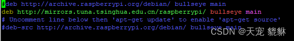 换源,注释掉原来的源地址,这里使用的是清华源