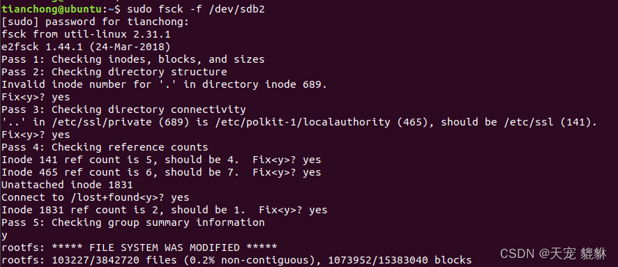 sudo fsck -f /dev/sdb2