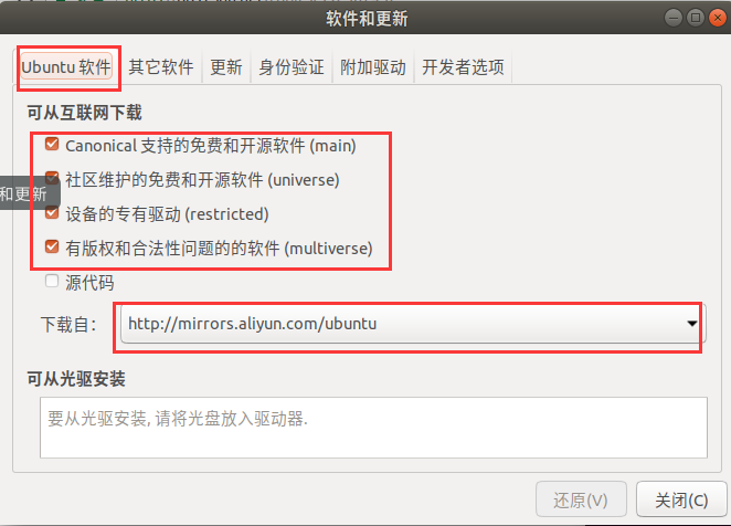 首先打开 软件和更新,设置选择 阿里的服务器