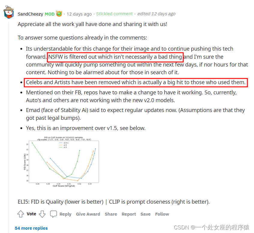使用 LAION的NSFW过滤器,会过滤掉一些“不可描述内容”,即成人内容。哈哈,这也引起了reddit上,让部分搞笑网友进行了差评。