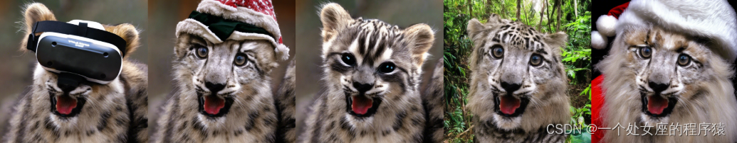 引入了一个新的文本引导(text-guided)修复模型,在新的Stable Diffusion 2.0文本到图像的基础上,进行了微调,这使得智能和快速切换图像的部分非常容易。这样,用户就可以非常智能、快速地替换图像的部分内容,比如图中豹子的嘴巴和鼻子是不变的,其他部分可以随意改变。