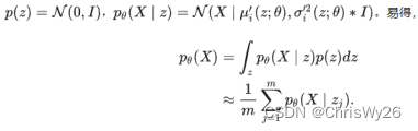 (1)给定输入解码器的z一个分布可以解决上述问题,假设一个服从标准多元高斯分布的多维随机变量的数据集X,通过根据已知分布采样得到的zi,来训练decoder神经网络,从而得到多元高斯分布的均值和方差,从而成功得到一个逼近真实分布p(X)的p’(X)