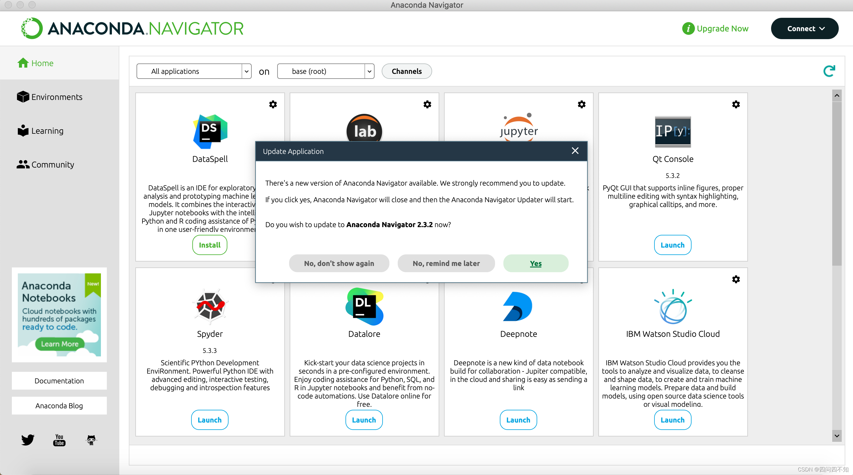 3、打开anaconda导航,这里就类似于App Store苹果商店,可以安装自己所需要的软件,例如Jupytrt Notebook等。