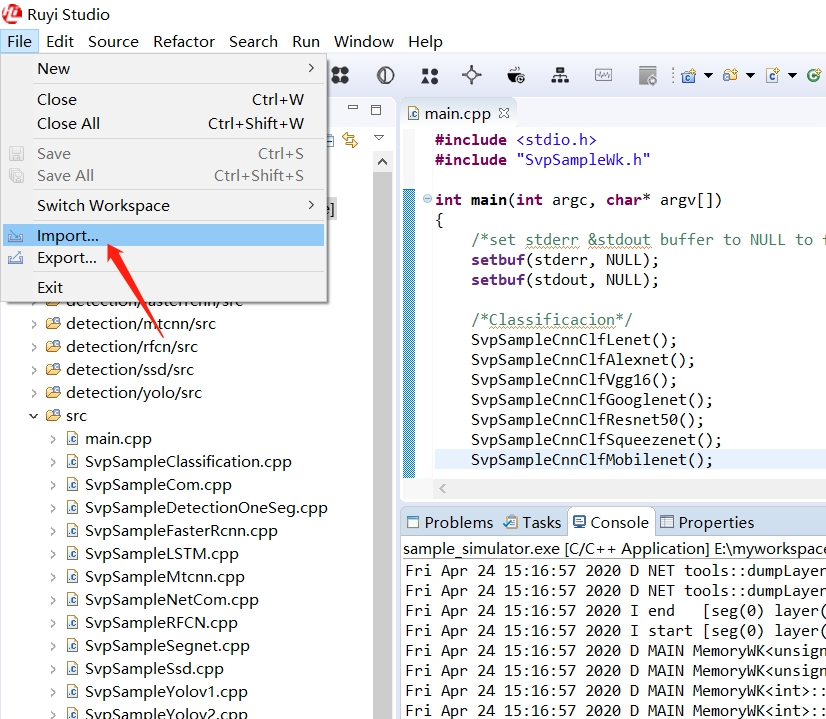 我们使用 Ruyi Studio 来快捷的实现仿真运行。导入范例: