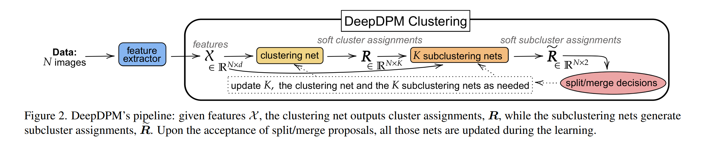 论文简介:Using a split/merge framework, a dynamic architecture that adapts to the changing K, and a novel loss, our proposed method outperforms existing nonparametric methods (both classical and deep ones)./使用拆分/合并框架、适应变化的 K 的动态架构和新颖的损失,我们提出的方法优于现有的非参数方法(包括经典方法和深度方法)。