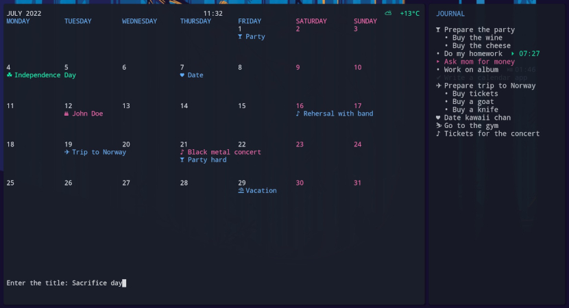 ‘Calcure - Modern TUI calendar and task manager with minimal and customizable UI.’ by anufrievroman