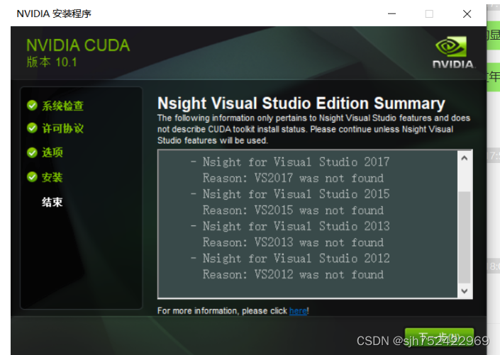 下载好以后,就可以直接安装了,一路next就可以完成cuda10.1驱动的安装,我的下载地址如下: