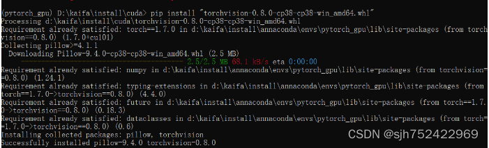 把下载下来的pytorch和torch vison,都放在了这个目录D:kaifainstallcuda