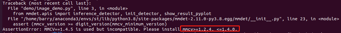 2、第六步安装时一定要指定版本,我自己安装时默认安装mmcv1.4.5的版本,虽然作者GitHub官网写可以用1.4.5版本,但是安装好之后会报错这个