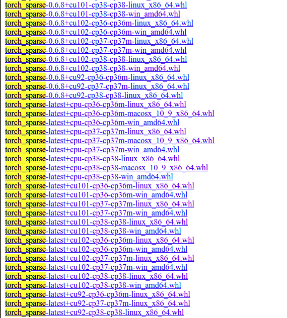 https://pytorch-geometric.com/whl/torch-1.6.0.html注意自己的环境pytorch版本,而更改上述网址,笔者使用的是1.6,根据实际使用更改。注意1.6最低cuda版本为10.1。