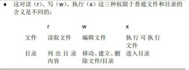 针对文件和目录又有不同的含义: