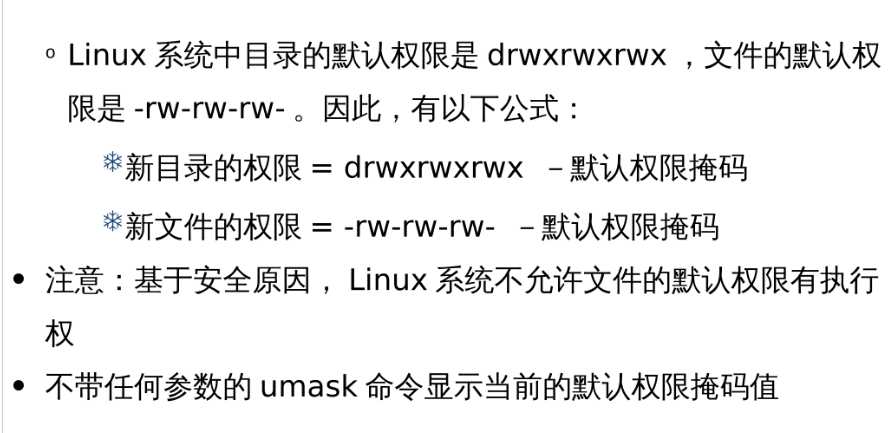 以上就是洁净外套最近收集整理的关于linux操作系统—第五章.2文件目录访问权限一,文件目录的访问权限基本概念二,查看文件权限三,改变访问权限三,改变默认权限四,改变文件目录的所有权的全部内容,更多相关linux操作系统—第五章.2文件目录访问权限一,文件目录内容请搜索靠谱客的其他文章。