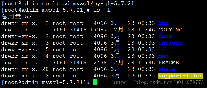 以下截图为我本地mysql5.7.21目录(/opt/mysql/mysq-5.7.21)