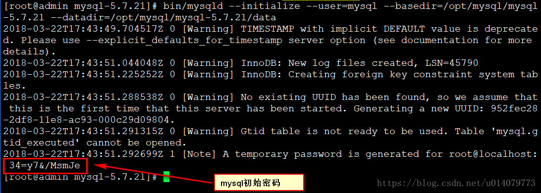 bin/mysqld --initialize --user=mysql --basedir=/opt/mysql/mysql-5.7.21 --datadir=/opt/mysql/mysql-5.7.21/data