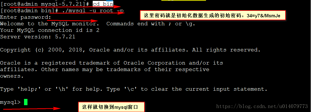 [root@admin mysql-5.7.21]# mysql -u root -p