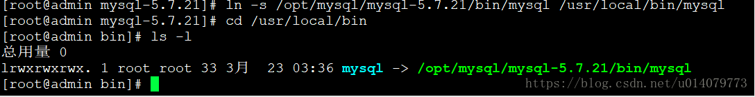 ln -s /opt/mysql/mysql-5.7.21/bin/mysql /usr/local/bin/mysql
