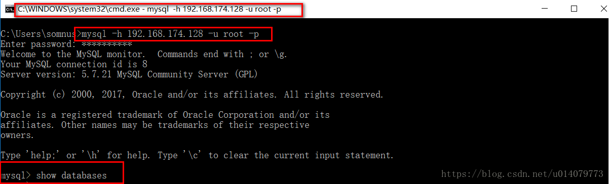 windows+R--cmdmysql -h 192.168.174.128 -u root -p
