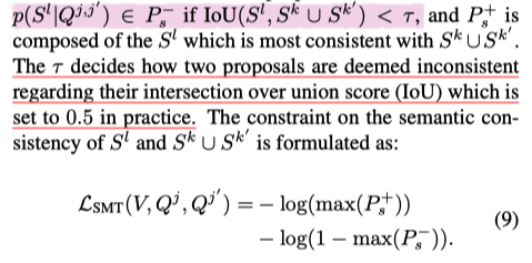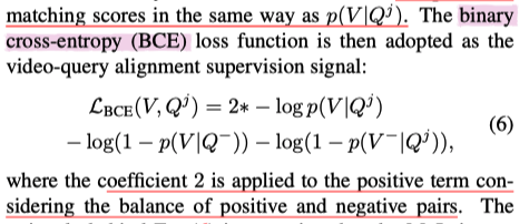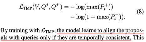 由于没有明确的时间边界的annotation,因此作者进行了video-level的优化,将得到的proposal score进行maxpooling,作为video query的matching score