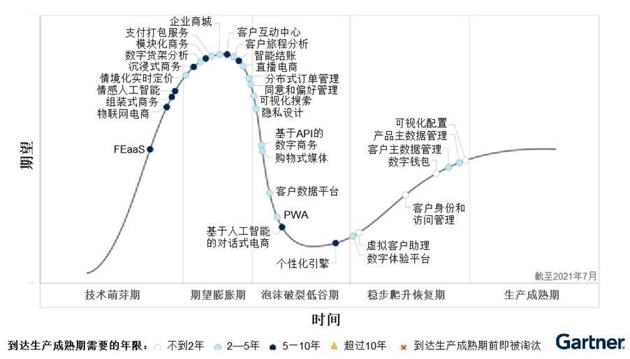 图一、2021年数字商务技术成熟度曲线,来源:Gartner(2021年10月)